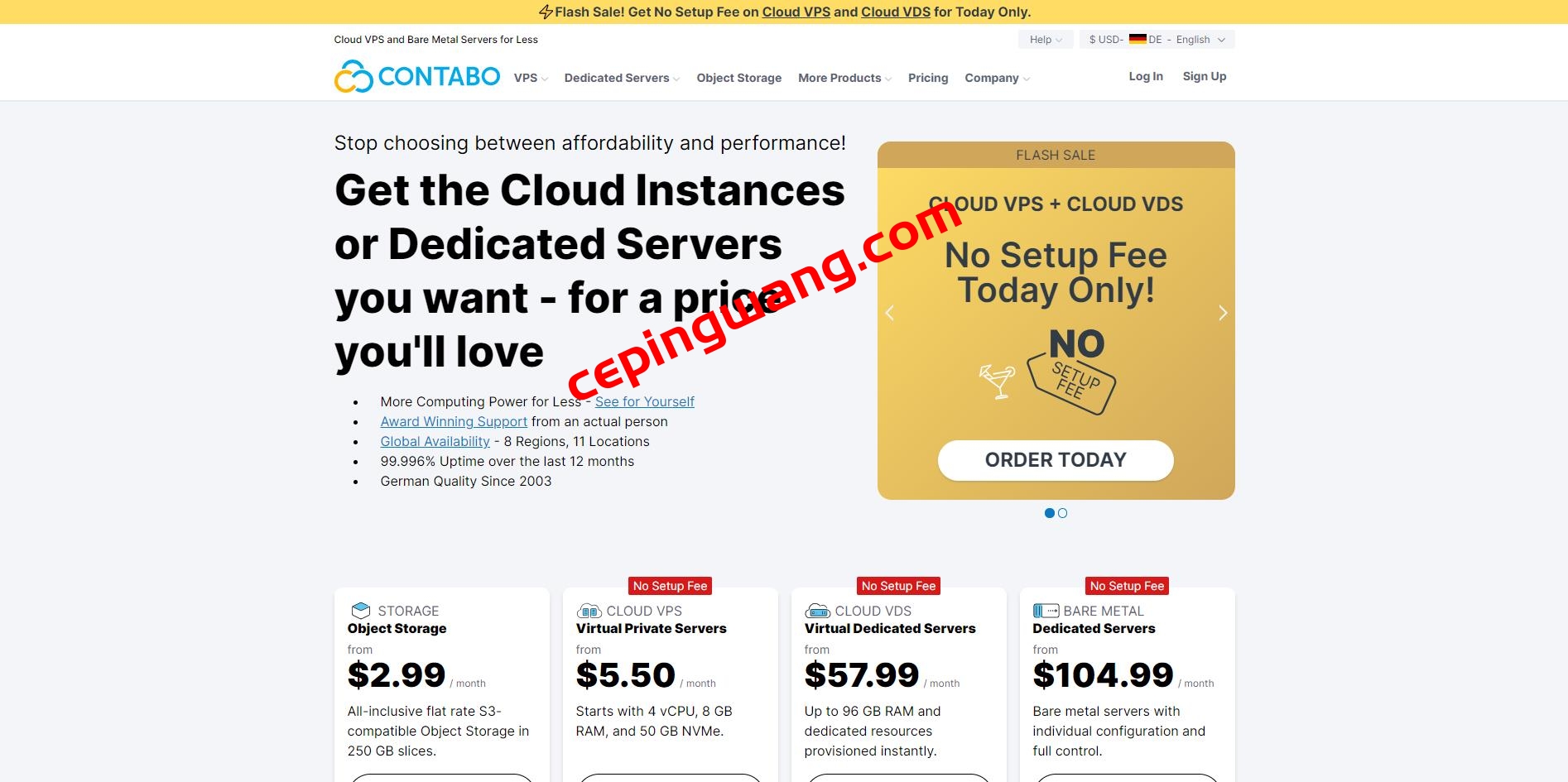 Contabo是一家知名欧洲VPS主机提供商,总部位于德国慕尼黑,成立于2003年春季,已经有20年了。以前只有德国一个机房,近几年增加了英国、美国中部、东部、西部、和新加坡机房,全球布局还是不错的。如今是一家专业的云计算和主机提供商,提供虚拟专用服务器(VPS)、云虚拟专用服务器(Cloud VPS)、云专用服务器(Cloud Dedicated Server)、专用服务器(Dedicated Server)、对象存储(Object Storage)等多种产品,具有价格低、性能稳定、技术先进、数据中心覆盖范围广等优势。