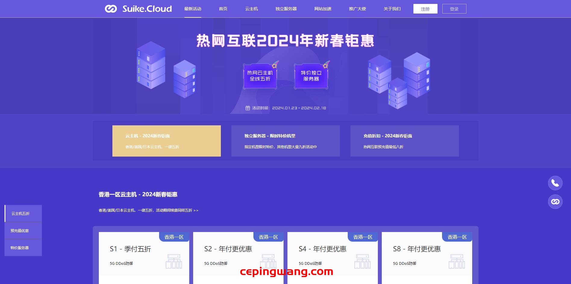 Hotiis(热网互联)于2009年成立,是“随客”云计算旗下业务,该公司下辖“香港随客信息技术有限公司、四川随客信息技术有限公司、天津随客科技有限公司”,主营全球20多个区域的CDN业务,其次还有独立服务器和云服务器。目前商家开启了2024新春钜惠活动,云主机5折,限时不限购,另有独立服务器特价和八折预存优惠。