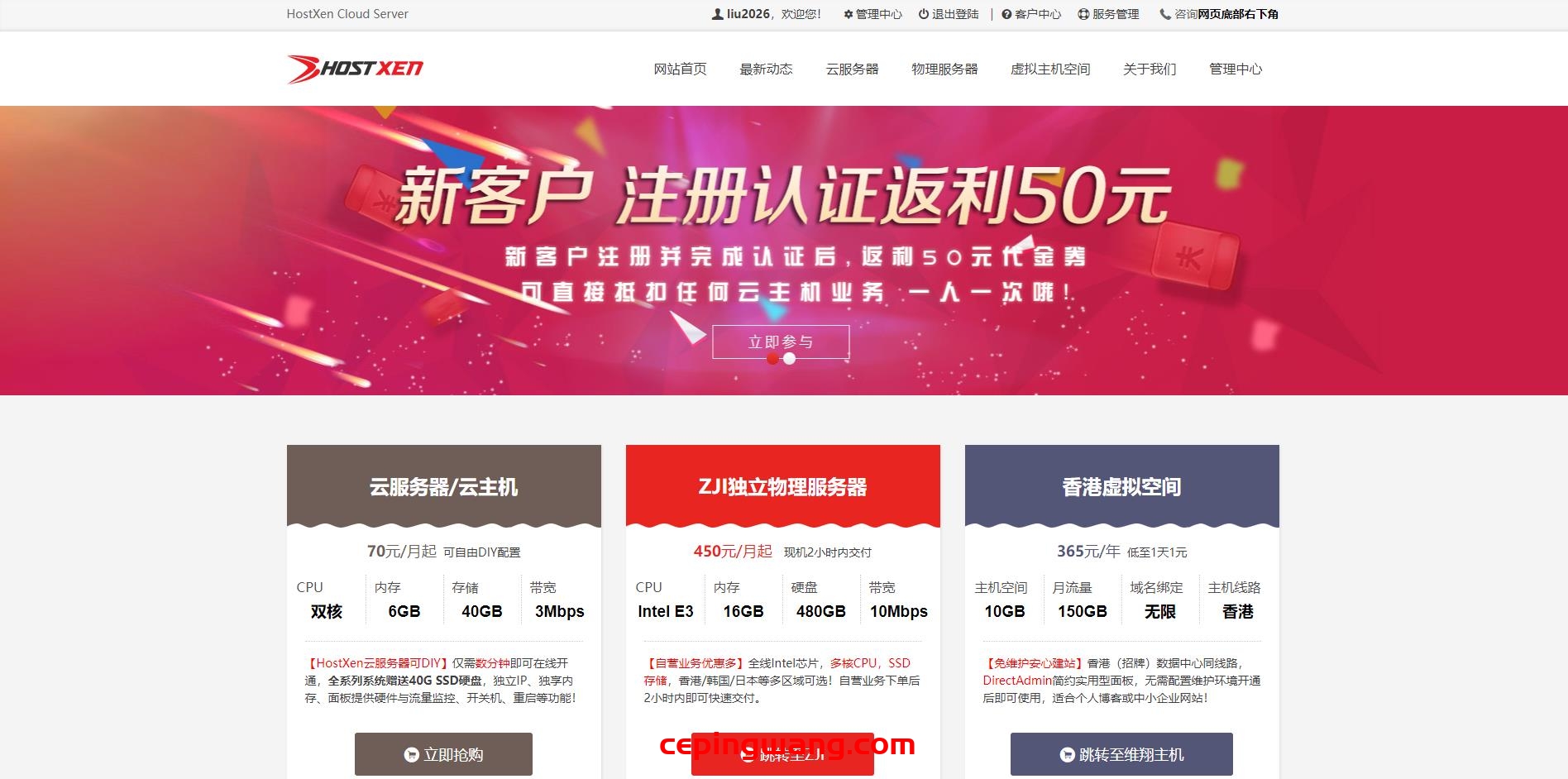 用户可以在下单连接DIY配置(内存、硬盘、带宽、CPU核心等),根据自己需求选取,上面只是基础配置,支持安装Linux或者Windows操作系统,新客户注册认证直接赠送50元代金券,不设使用期限,可用于主机新购或续费。