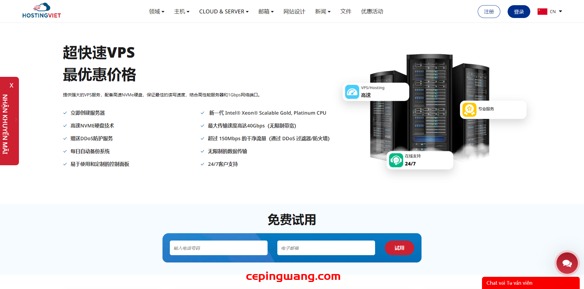 HostingViet是一个成立于2012年的老牌越南本土主机商,已稳定运作超过10年,总部位于越南河内。由于外贸业务对于东南亚主机的需求增加,我们也可以看到越南主机商纷纷走出来营销自己让更多的海外用户选用。作为网络从业人员较多的中国,他们肯定不会放弃这个市场。HostingViet 目前有提供中文、英文、越南语言,便于我们的选择。