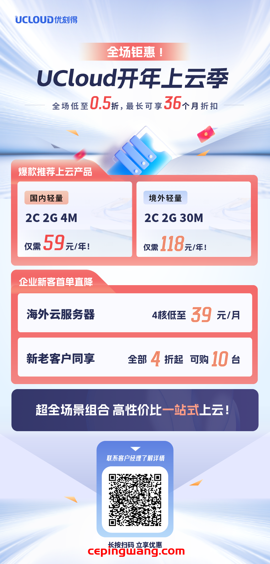 今日收到UCloud发来的开年采购促销。UCloud是国内领先的云计算服务提供商之一,致力于为中小企业提供高效、安全、稳定的云计算服务。UCloud拥有自主研发的云服务器、云数据库、云存储等核心产品,以及面向不同行业的解决方案。公司在全球范围内拥有超过30个数据中心。