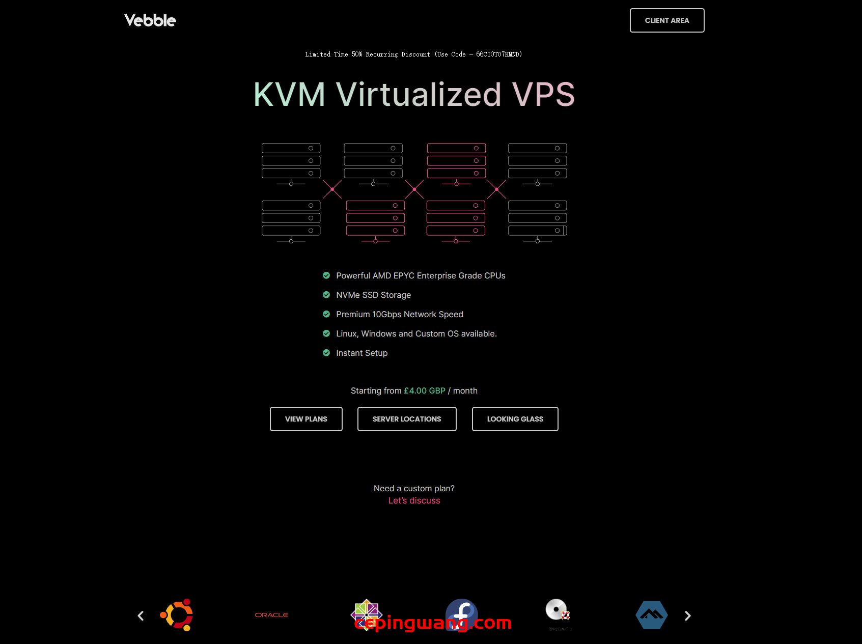 Vebble,国外商家,主要提供新加坡KVM VPS,特色是10Gbps端口,处理器为AMD EPYC™ 7003。现在4GB内存及以上有循环5折优惠。