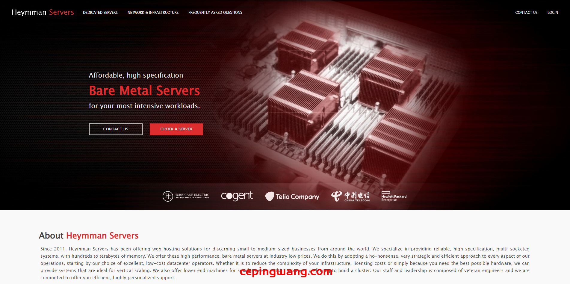 Heymman,2011年成立的美国主机商,主要为中小型企业提供网络托管解决方案,主要有两个机房,一个是大家熟知的堪萨斯垃圾场(NOCIX/Wholesale Internet),另一个是阿姆斯特丹Equinix机房(Psychz饭桶)。