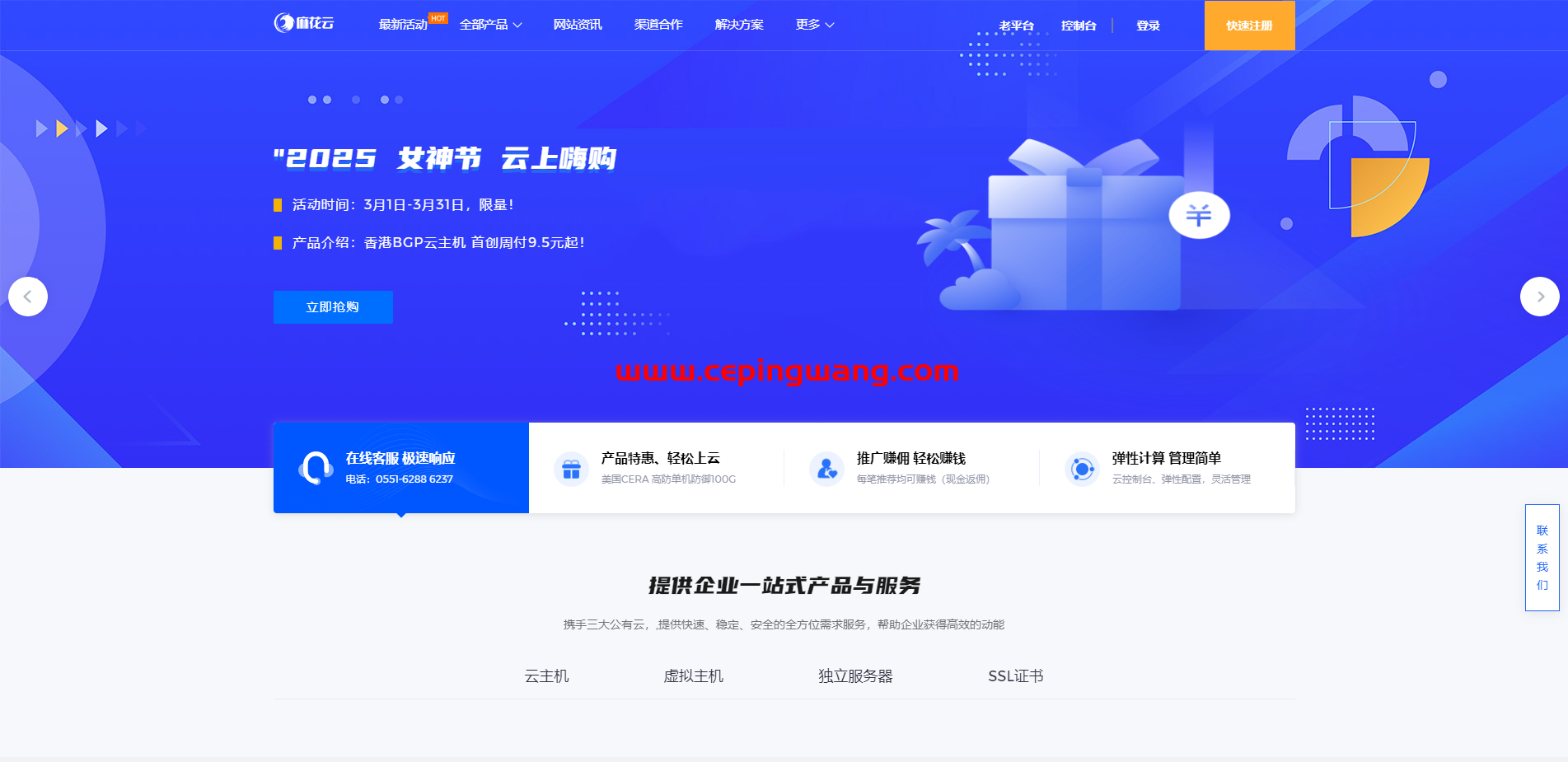 麻花云,成立于2007年。当前,主营安徽移动BGP线路的云服务器和独立服务器业务,数据中心连入移动骨干网,提供5M、10M,大带宽云主机;香港云服务器的托管在将军澳,双向CN2-GIA优质线路、采用HYPER-V虚拟技术架构。目前正在举行2025年三八节大促!